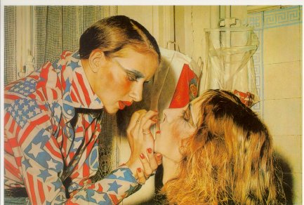 Abb. 2: Franz Gertsch: Maria schmückt Luciano (1975); Museum Ludwig, Köln Die in Gertschs Bild deutlich sichtbare 'Closeup-Technik', dies meint, das Betrachten eines Objekts aus allernächster Nähe wie durch das Teleobjektiv einer Kamera -, ist keine Erfindung des 20. Jahrhunderts. Cindy Nemser legt dar, daß die frontale 'Nahaufnahme' in der Malerei bisher immer in Kulturen auftauchte, die großes Interesse an der materiellen Seite des Lebens zeigen. Die zumeist überdimensionale Darstellung einzelner Umweltsegmente in den Niederlanden des 17. Jahrhunderts steht am Ursprung der kunsttheoretischen Kategorie des Stillebens, und auch in den Ruinen von Pompeji lassen sich analoge Wandgemälde finden (Nemser 1975: 54). Doch erst seit dem industriellen Zeitalter bis heute fand die Nahaufnahme dank der Fotokamera breite Verwendung im künstlerischen Bereich. Zudem weist wohl keine andere Epoche so viele Reproduktionen der Wirklichkeit auf wie das 20. Jahrhundert: