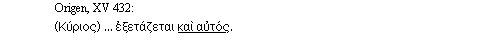 We have to study certain particular, noteworthy uses of anaphora. In Origen (XIV 412) function as anaphoric of a nominal syntagm ( ), while in St. Jerome (XIV 411) ipse is used as anaphoric of a single word (Jesus)