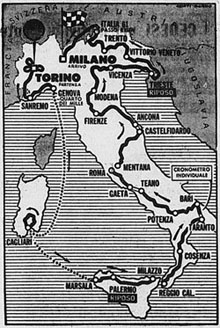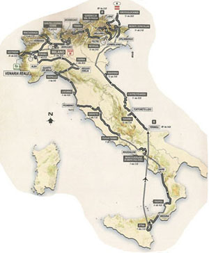 Wider allem campanilismo bzw. localismo – als typisch italienische Phänomene heutzutage immer noch von Relevanz: "[E]ssere italiani è appartenere a un Paese fatto essenzialmente di paesi" (Clemente 1997: 39) – wird dem Giro d'Italia die Mission auferlegt, das verbindende Band zu knüpfen zwischen den "diversità immense e faticose da tenere assieme" (repubblica.it 29.05.2011). Selbst das Inkohärenz vermittelnde Bild der 'mille Italie' (vgl. Galli della Loggia 1998: 59–85) kann bei einem so hehren Vorhaben seine negativen Konnotationen verlieren und zu einer fast idyllischen Szenerie umfunktioniert werden: "Quest'Italia dai mille visi come si fa a non volerla bene? A ogni angolo di strada la tocchi e le mani ti si riempiono d'oro" (Paese Sera 26.–27.05.1955 zit. nach Pratolini 2001: 89). Unter diesem Aspekt wird die Italienrundfahrt in mythischer Bedeutungszuschreibung zum Symbol für "[l]'Italia della provincia, della solidarietà, dei tricolori esposti alle finestre, dei mille paesini" (repubblica.it 29.05.2011). Eine solch überzeugende Interpretations- und Identifikationsvorlage kann bei derartig insistenter und repetitiver Sinnattribuierung allerorts nur angenommen werden: "[O]gni borgata, ogni frazione, ogni sperduto casolare offre il suo tributo di entusiasmo e di fratellanza" (GdS 17.05.1909 zit. nach Colombo 1998: 70). Der Giro d'Italia wird idealtypisch als kleinstes gemeinsames Vielfaches wie auch als kleinster gemeinsamer Nenner der italianità proklamiert. Wenn man so möchte, ist er denn der Versuch einer möglichen Antwort auf die Gretchenfrage "[E]sistono realtà che possono definire l'Italia?" (Calcagno 1993: VI) – der Giro als "una delle poche, vere rappresentazioni dell'identità italiana, capace di mettere d'accordo tutti (GdS 04.06.2007). Doch wie steht es ganz konkret um diese Fähigkeit des Giro d'Italia, alles und jeden in Einklang zu bringen? Handelt es sich dabei eher um einen typisch mythischen Wunschgedanken, um eine "exigence insidieuse et inflexible, qui veut tous les hommes se reconnaissent dans cette image éternelle […], qu'on a construite d'eux un jour comme si ce dût être pour tous les temps" (Barthes 1957: 264–265)? Oder stellt der Giro wirklich "l'album di famiglia della nostra identità" (corriere.it 26.04.2011) dar, in dem sich alle Italiener als solche abgebildet wiederfinden können? Wenn man voraussetzt, dass es sich bei einer 'Nation' um eine konventionale Abstraktionsgröße, d.h. um eine 'vorgestellte Gemeinschaft' (vgl. Anderson 1991) handelt, und dass sich Italien aufgrund seiner Partikularisierung folglich aus vielen "[i]magined Italies" (Dickie 1996) zusammensetzt, fällt es schwer zu glauben, dass es dem Giro materiell, d.h. mittels seiner Streckenführung gelingen kann, einen allseitig akzeptierbaren und das gesamte Staatsgebiet ausfüllenden Erinnerungsort zu bilden. PhiN 60/2012: 80 4 Der Giro d'Italia als Manifestierung der unità d'ItaliaBei aktuell 8092 Gemeinden (vgl. http://www.istat.it/it/archivio/6789), aus denen sich Italien verwaltungstechnisch zusammensetzt, kann natürlich nicht erwartet werden, dass der Giro, um seiner erinnerungsörtlichen Pflicht in vollem Umfang nachzukommen, alle Kommunen der Halbinsel tatsächlich ansteuert.11 Doch allein schon auf einer kleinmaßstäbigen Betrachtungsebene fällt überraschenderweise auf, dass die Italienrundfahrt – trotz der ihr zugeschriebenen gesamtnationalen Reichweite bzw. Einheitssymbolik – viel weniger unitarisch auftritt, als eigentlich zu erwarten wäre. Sie scheint hingegen einmal mehr die alt bekannte Problematik des italienischen Nord-Süd-Gegensatzes bzw. -Ungleichgewichtes zu materialisieren, wobei die hier im Fokus stehende Streckenführung im Verlauf der mittlerweile über 100-jährigen Geschichte des Radrennens in unterschiedlichem Maße von politisch-ideologischen, ökonomischen, logistisch-organisatorischen wie auch rennstrategischen Motiven geprägt war. So lassen sich bereits bei der ersten Austragung des Giro d'Italia 1909 einige zentrale Aspekte oder Einflussfaktoren herausarbeiten, welche für die damalige Routenwahl als ausschlaggebend und auch im Hinblick auf alle zukünftigen Ausgaben als traditionsbegründend anzusehen sind. Ein knappes Dreivierteljahr vor dem ersten Startschuss veröffentlichte die Gazzetta dello Sport als veranstaltende Zeitung nämlich eine Art Projektskizze und erläuterte hierbei die Beweggründe für die geplante Parcourswahl: